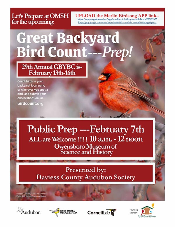 link to our facebook page and info there: https://www.facebook.com/DaviessCountyAudubonSociety/